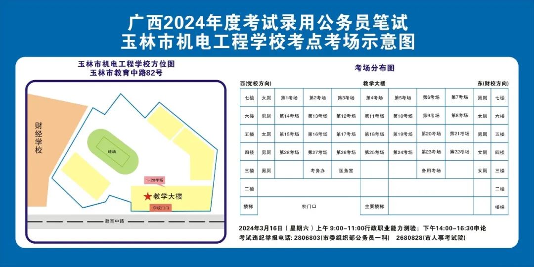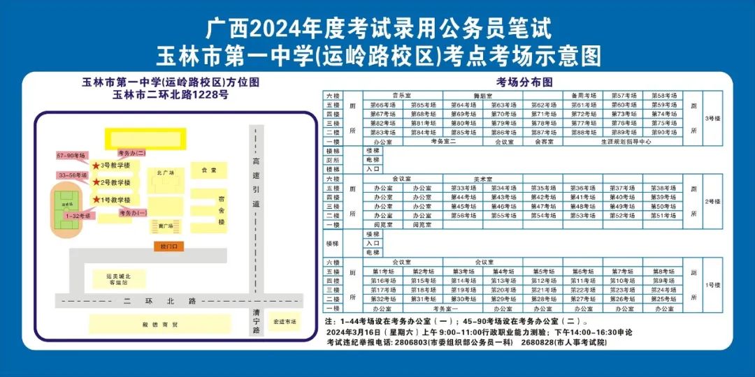 除考試當(dāng)天考生可以進(jìn)入考點(diǎn)外,考生不得提前進(jìn)入考點(diǎn)查看考場(chǎng)(學(xué)校將在大門(mén)處擺放考場(chǎng)分布示意圖),玉林考區(qū)10個(gè)考點(diǎn)的考場(chǎng)布置情況如下: