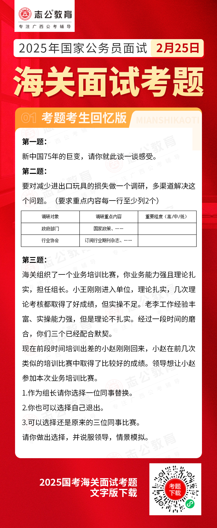 2025年2月25日國考海關(guān)面試考題(考生回憶版)