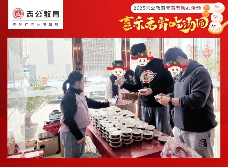 元宵節(jié),作為中國(guó)的傳統(tǒng)節(jié)日之一,承載著團(tuán)圓、歡樂(lè)與美好的祈愿。在這個(gè)溫馨的佳節(jié),志公教育也為正在備考的學(xué)員以及公司員工都送上了一份甜蜜驚喜 —— 暖心湯圓,讓每一位小伙伴/學(xué)員都能在忙碌的學(xué)業(yè)/工作之余,感受到濃濃的節(jié)日氛圍與志公教育關(guān)懷。