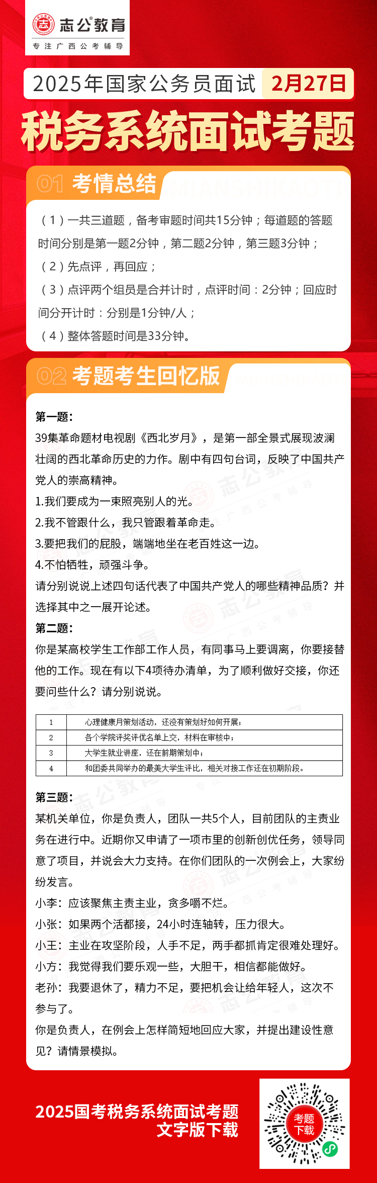2025年2月27日國(guó)考稅務(wù)局面試考題(考生回憶版)