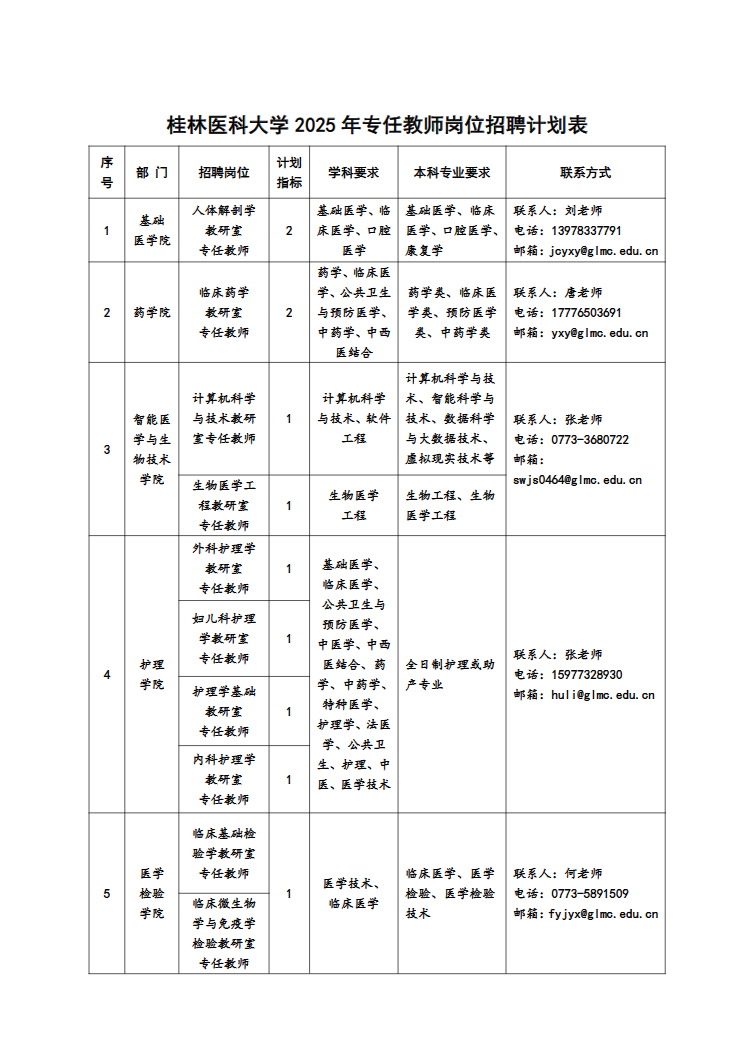(二)各部門聯(lián)系方式見(jiàn):桂林醫(yī)科大學(xué)各崗位招聘計(jì)劃表。