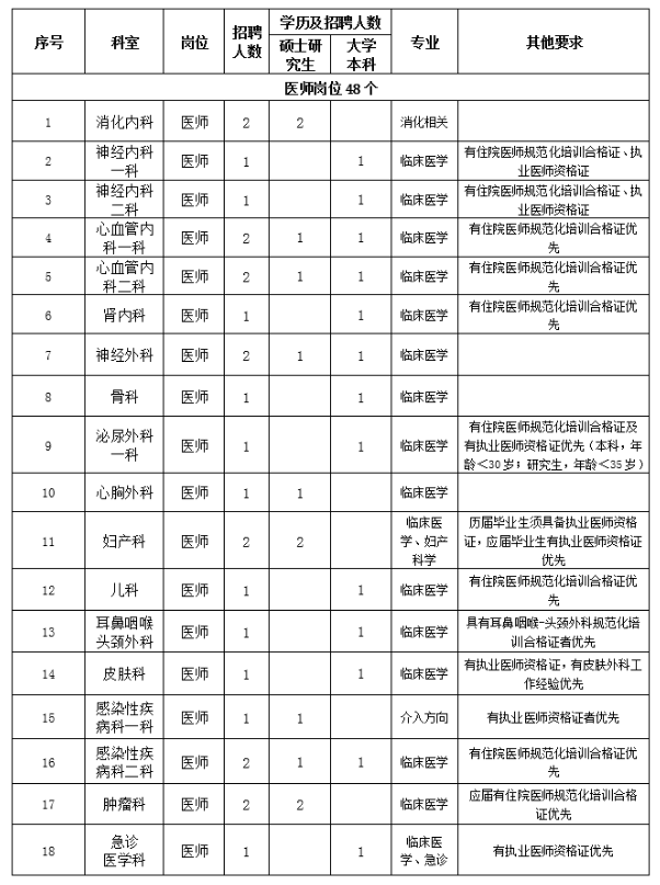 1.思想政治素質(zhì)好,擁護(hù)黨的路線、方針、政策。2.遵紀(jì)守法,醫(yī)德品行良好,有較強(qiáng)的事業(yè)心、責(zé)任心和進(jìn)取心。3.身體健康,能滿足應(yīng)聘崗位需要。4.具備相應(yīng)的學(xué)歷和學(xué)位,有履行應(yīng)聘崗位職責(zé)的專業(yè)能力、技能條件。5.具有團(tuán)隊(duì)精神,有良好的溝通能力。6.具備應(yīng)聘崗位所需要的其他條件。7.服從單位安排。