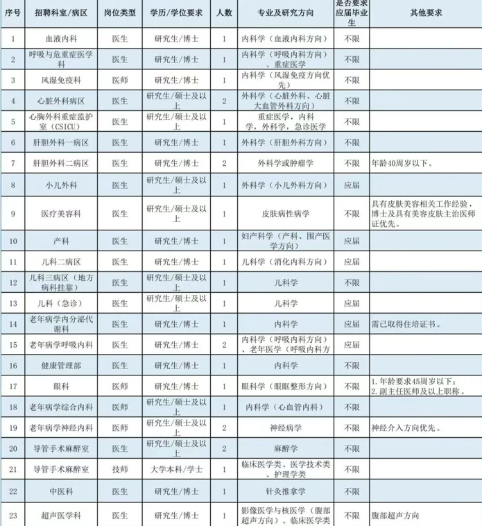 博士崗位:全年長期招聘(我院將根據(jù)報(bào)名情況分批次安排面試,具體以醫(yī)院通知為準(zhǔn)),崗位招滿即關(guān)閉報(bào)名通道。