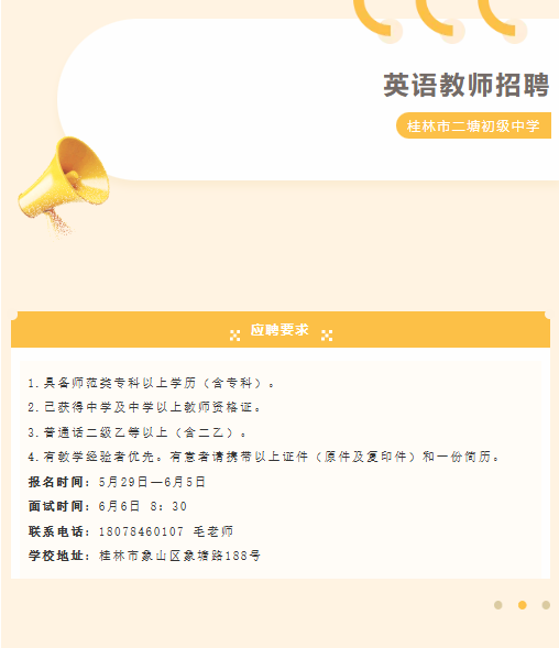 原文標(biāo)題:桂林市二塘初級(jí)中學(xué)招聘英語老師一名