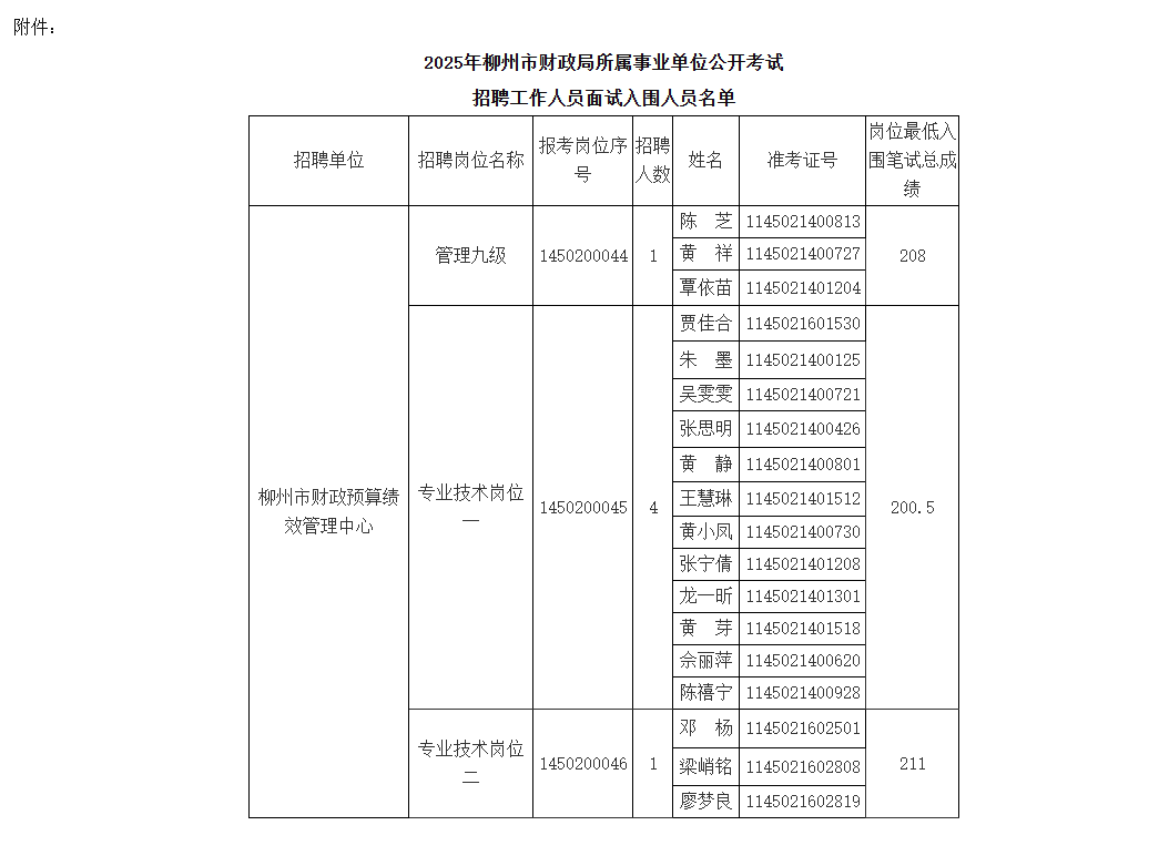 附件:《2025年柳州市財政局下屬事業(yè)單位公開考試招聘工作人員面試入圍人員名單》