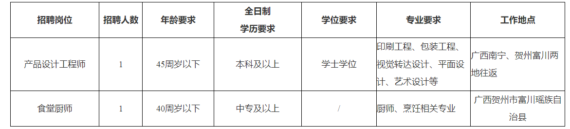 本次公開招聘2人,需求崗位、人數(shù)、學歷專業(yè)要求等資格條件,工作內容、職位要求詳見附件《廣西真龍彩印包裝有限公司2025年第一批次人才招聘需求表》