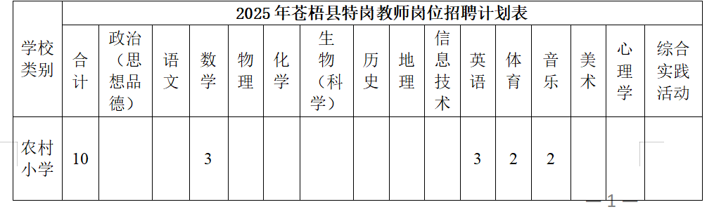 附件:2025年蒼梧縣特崗教師崗位計(jì)劃表