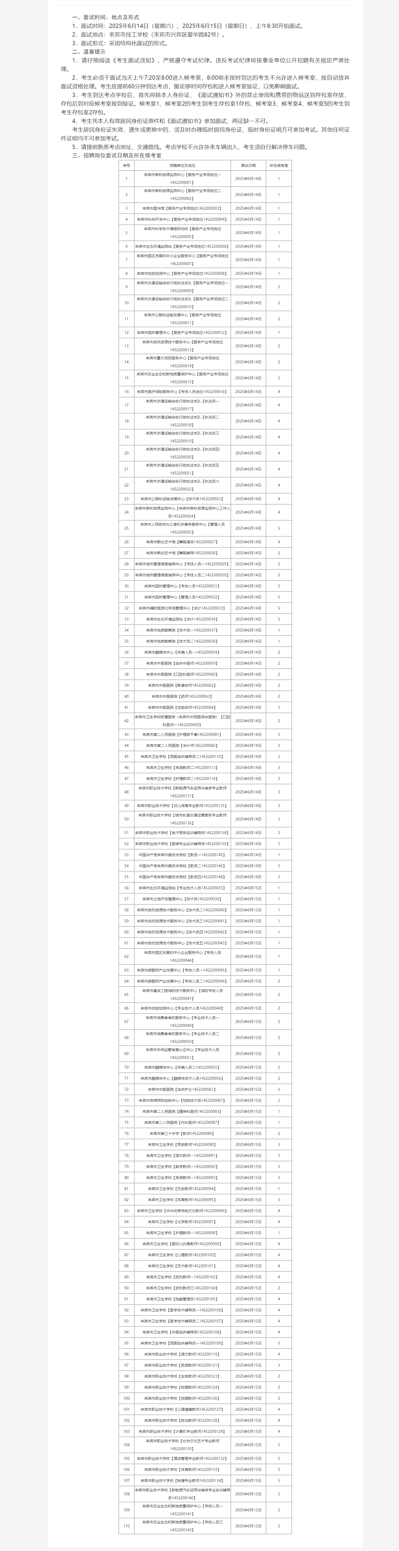 原文標(biāo)題:來賓市2025年市直事業(yè)單位公開招聘人員面試招聘崗位所在候考室和溫馨提示