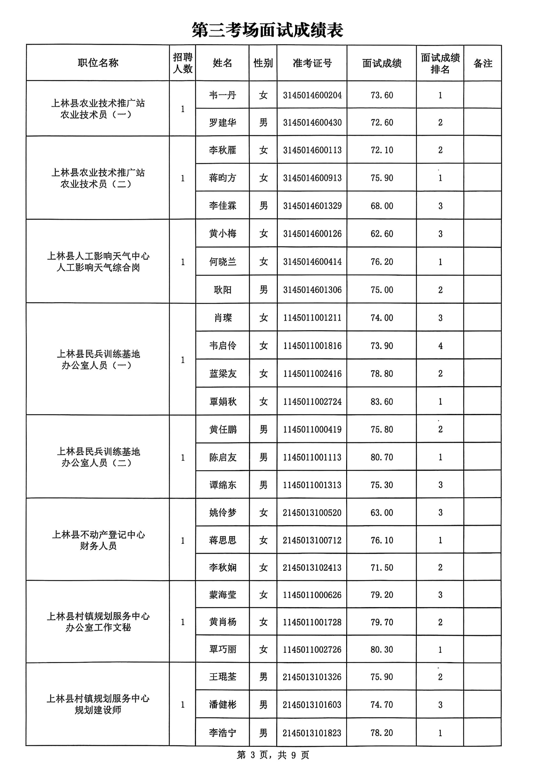 上林縣2025年公開(kāi)考試招聘事業(yè)單位工作人員面試成績(jī)公布如下: