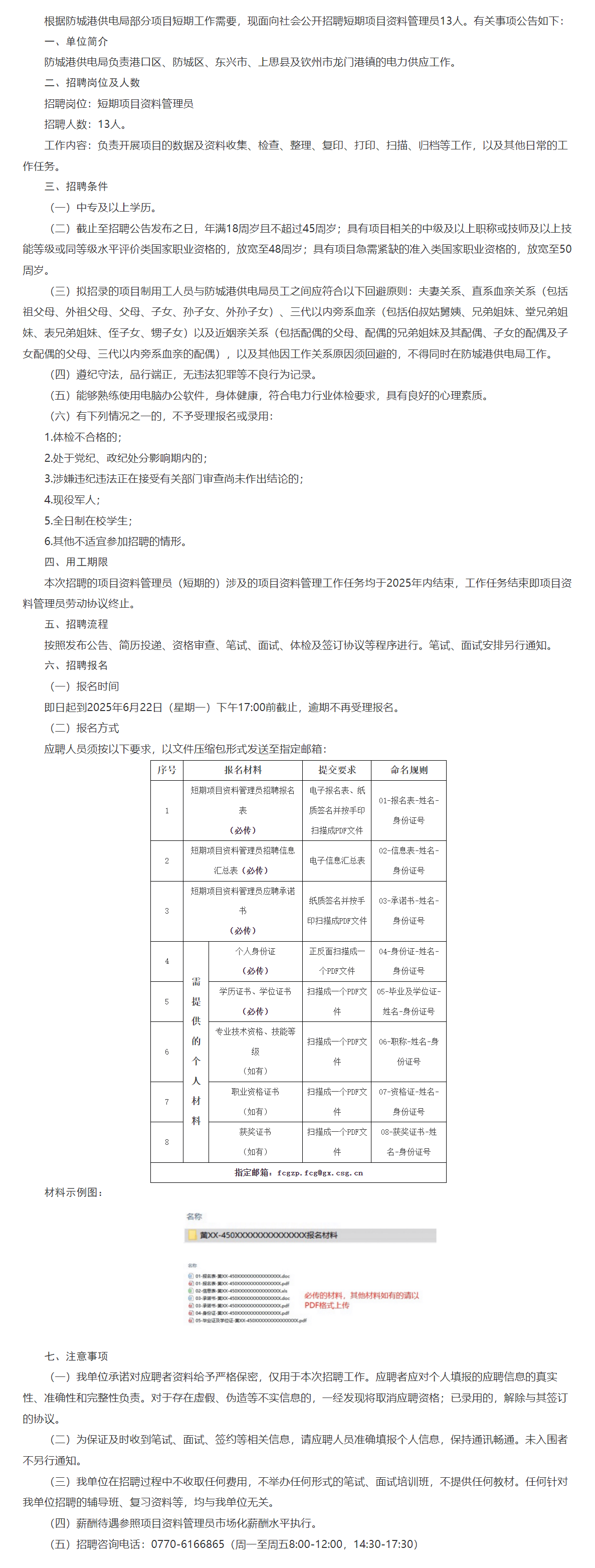 2025年防城港供電局短期項(xiàng)目資料管理員招聘13人