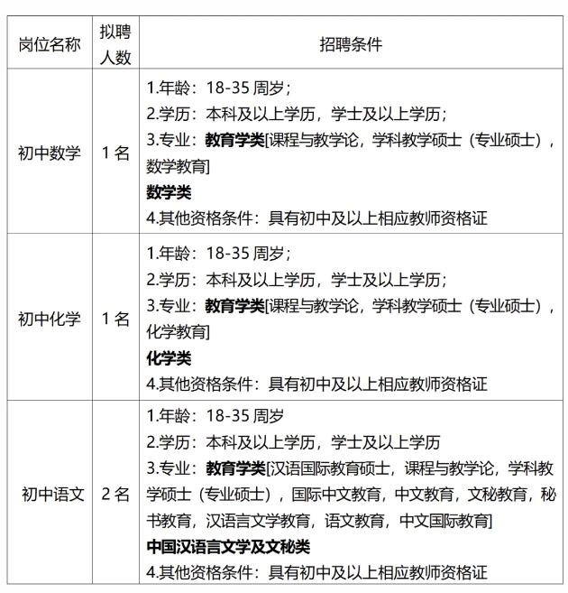 (六)18周歲以上、35周歲以下。有教學(xué)經(jīng)驗(yàn)豐富、碩士研究生或中級職稱以上的應(yīng)聘人員,年齡可適當(dāng)放寬到45周歲。