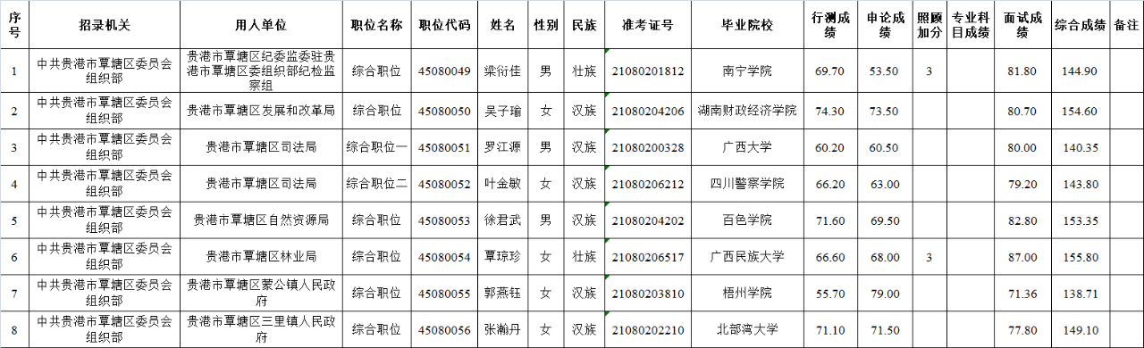 6.6 貴港市覃塘區(qū)2025年度考試錄用公務(wù)員擬錄用人員名單(一)