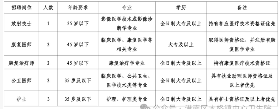 2025年港南區(qū)木格鎮(zhèn)中心衛(wèi)生院招聘10人