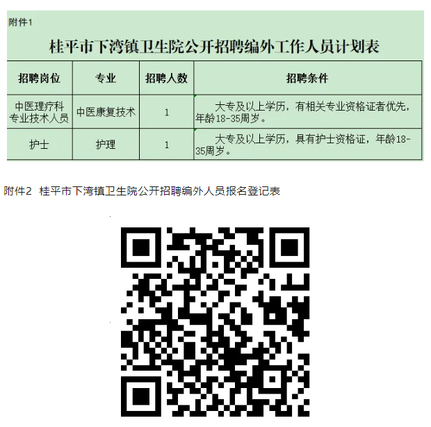 附件:1.桂平市下灣鎮(zhèn)衛(wèi)生院公開(kāi)招聘編外工作人員計(jì)劃表