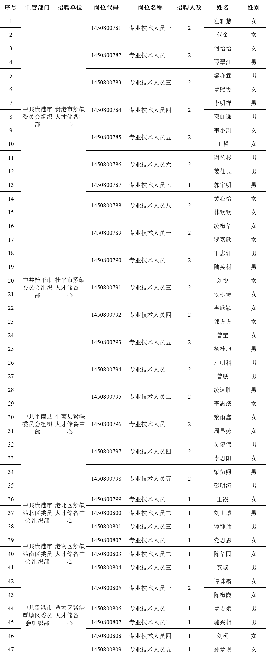 2025年貴港市引進(jìn)重點領(lǐng)域重點產(chǎn)業(yè)急需緊缺(高層次)人才進(jìn)入考察人員名單公告