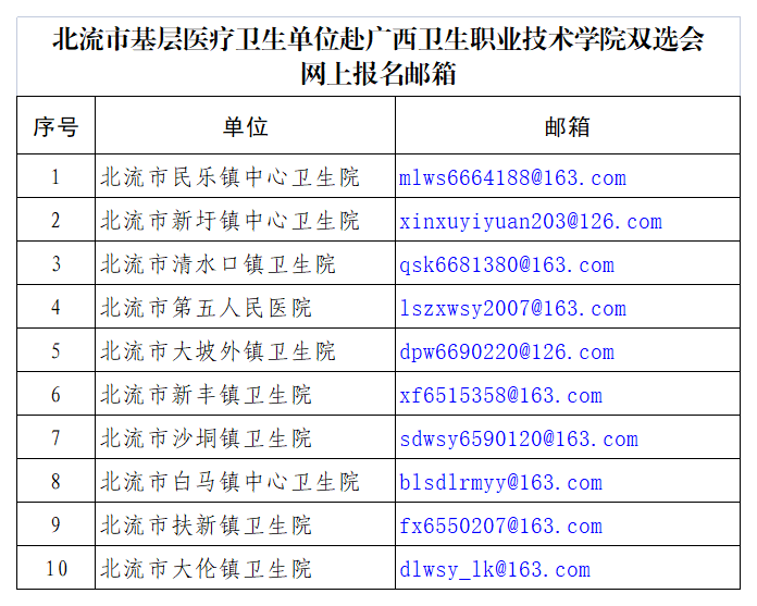 4.北流市基層醫(yī)療衛(wèi)生單位赴廣西衛(wèi)生職業(yè)技術(shù)學院雙選會網(wǎng)上報名郵箱