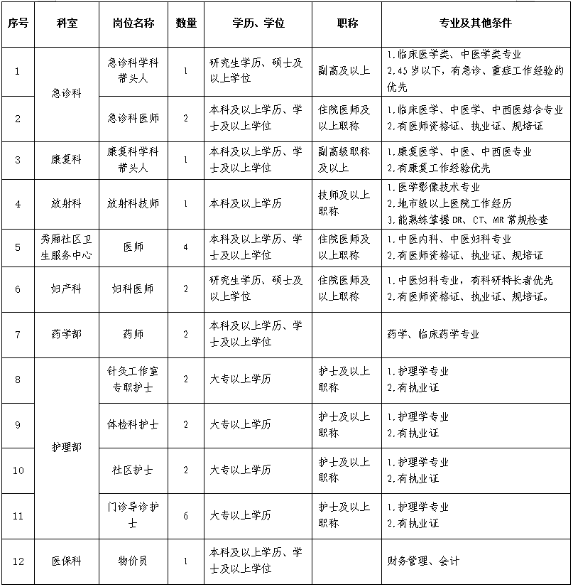 根據(jù)醫(yī)院高質(zhì)量發(fā)展需要,我院誠(chéng)聘衛(wèi)生醫(yī)療相關(guān)專業(yè)領(lǐng)域的人才,歡迎投簡(jiǎn)歷應(yīng)聘。
