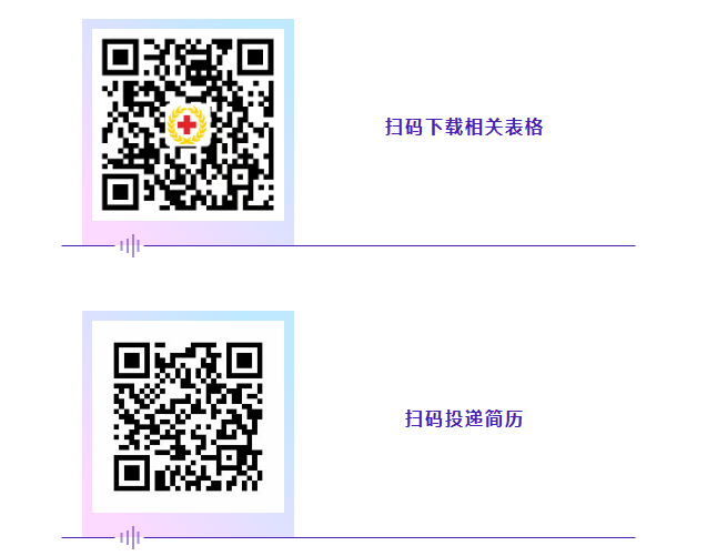 掃碼下載登記表等相關(guān)表格并填寫“個人應(yīng)聘信息表”,將“個人應(yīng)聘信息表”及個人簡歷以“姓名+專業(yè)+學(xué)校”的命名,發(fā)送至郵箱:hhyyrsk3858904@163.com;掃描二維碼,填報個人信息,上傳個人簡歷。