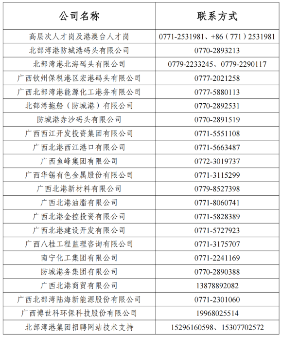 詳見附件1:《北部灣港集團2025年秋季招聘需求表及相關報名表格》。