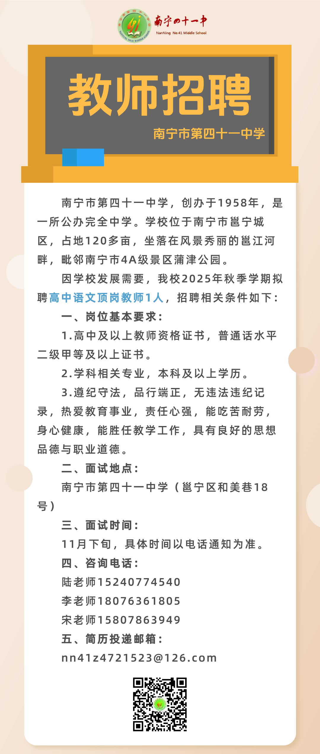 2025年秋季學期南寧市第四十一中學關(guān)于公開招聘頂崗教師的啟事