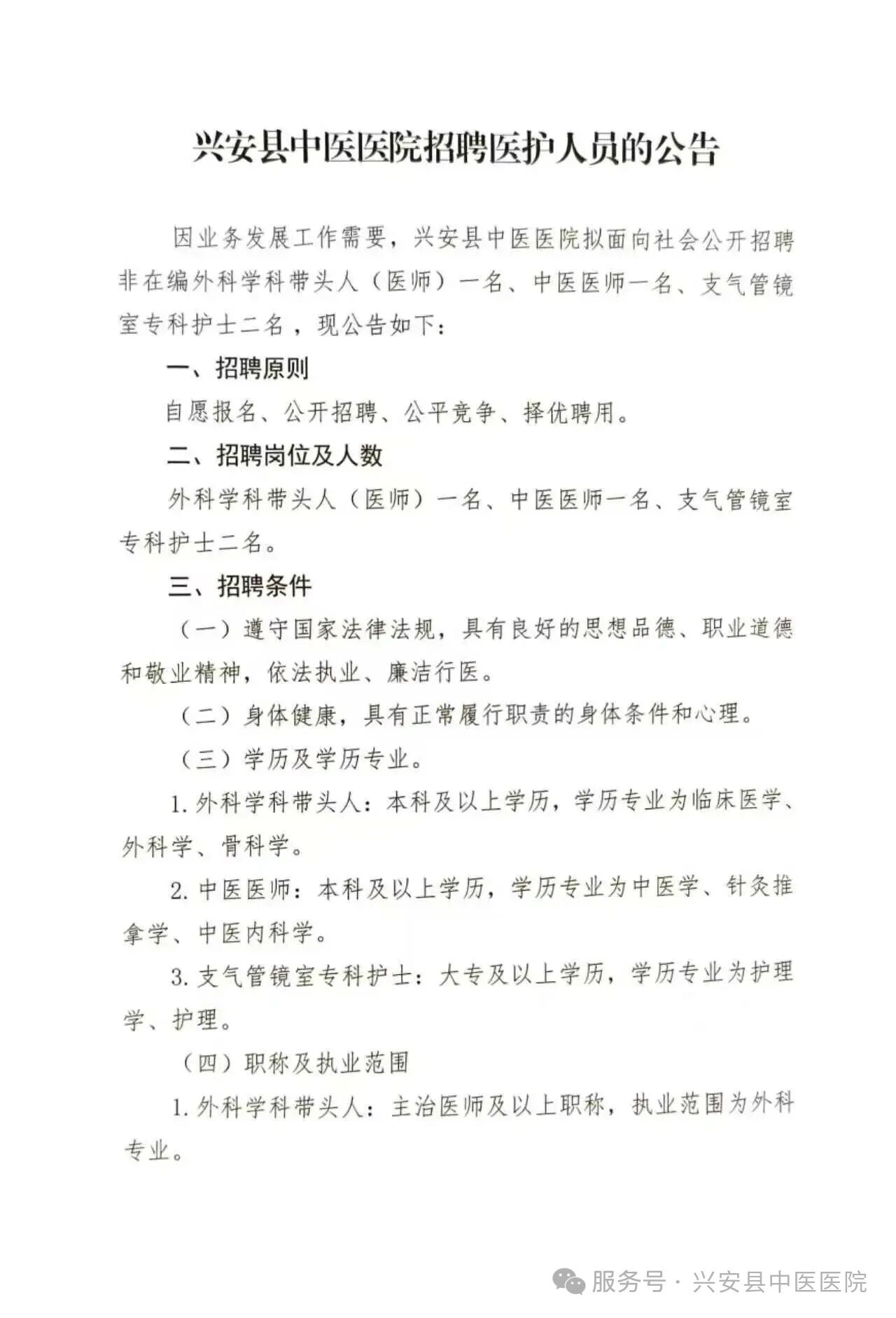 原文標題:2026年興安縣中醫(yī)醫(yī)院招聘醫(yī)護人員的公告