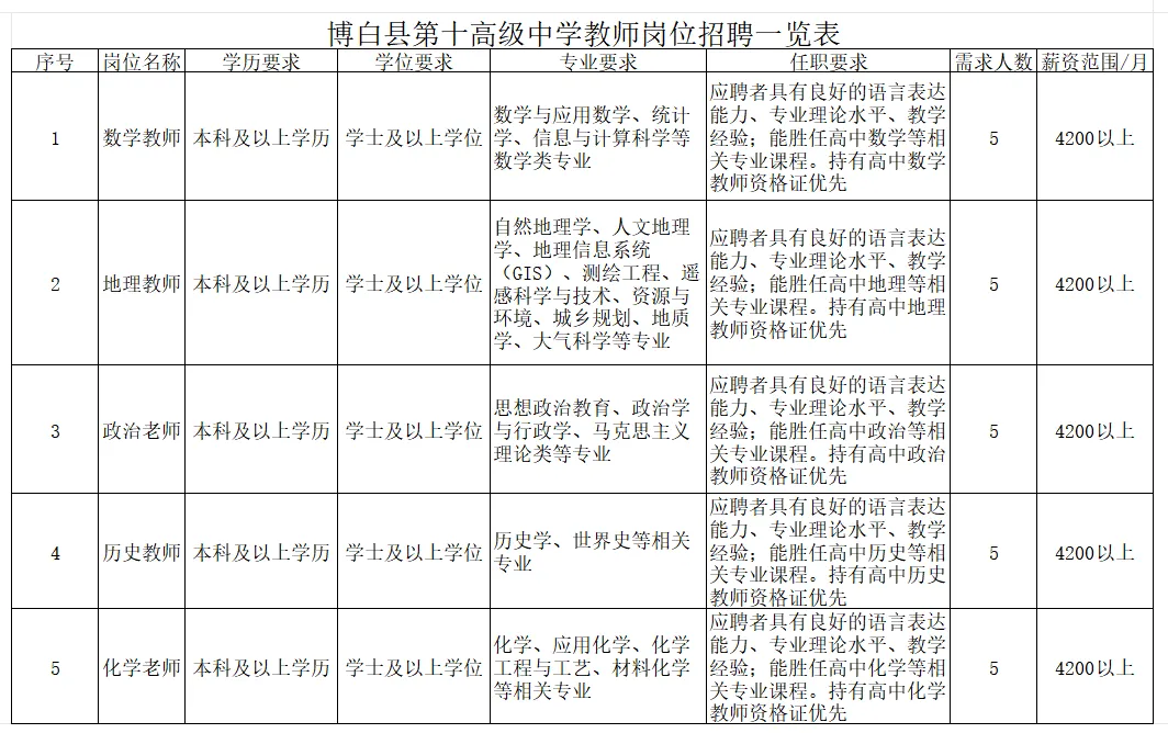 原文標(biāo)題:博白縣第十高級中學(xué)2026年教師招聘啟事