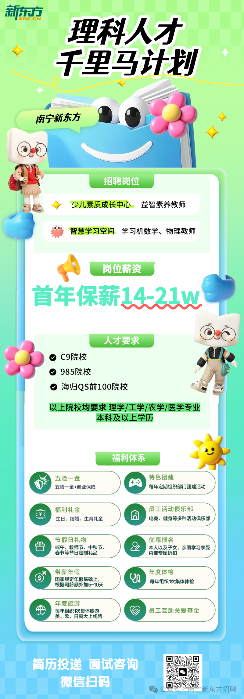 原文標(biāo)題:南寧新東方急招理科教師 | 首年保薪12-21萬 雙休 五險一金 年度帶薪旅游