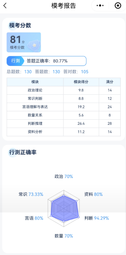 ?智能個性化報告:考后自動生成答題分析,精準(zhǔn)標(biāo)注薄弱模塊、正確率詳情,讓你清晰知道 “哪里會、哪里差”。