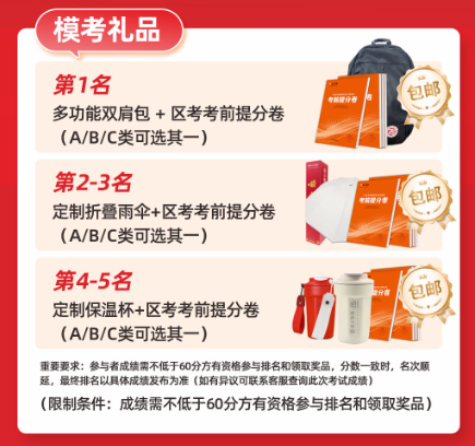 ??第1名:多功能雙肩包+區(qū)考考前提分卷(A/B/C 類任選,包郵)