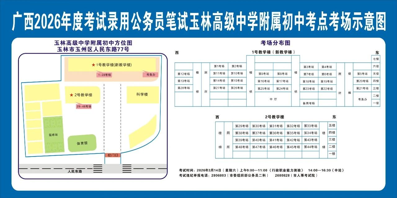 廣西2026年度考試錄用公務(wù)員(選調(diào)生)筆試將于3月14日舉行,為進(jìn)一步提升玉林考區(qū)服務(wù)保障質(zhì)量,現(xiàn)就有關(guān)注意事項(xiàng)提示如下,請(qǐng)廣大考生做好應(yīng)試準(zhǔn)備工作,準(zhǔn)確掌握考試時(shí)間、考點(diǎn)地址及相關(guān)注意事項(xiàng)。
