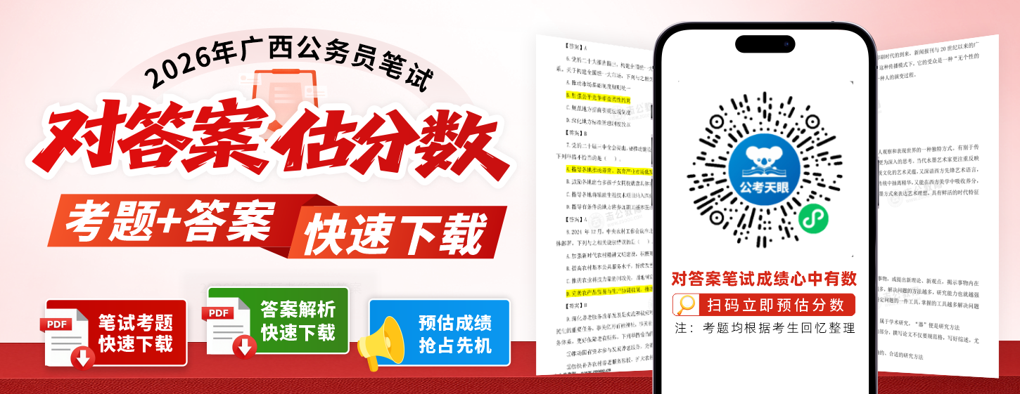 2026年廣西區(qū)考《行測(cè)》考題回憶版發(fā)布!在線估分+答案解析一鍵下載