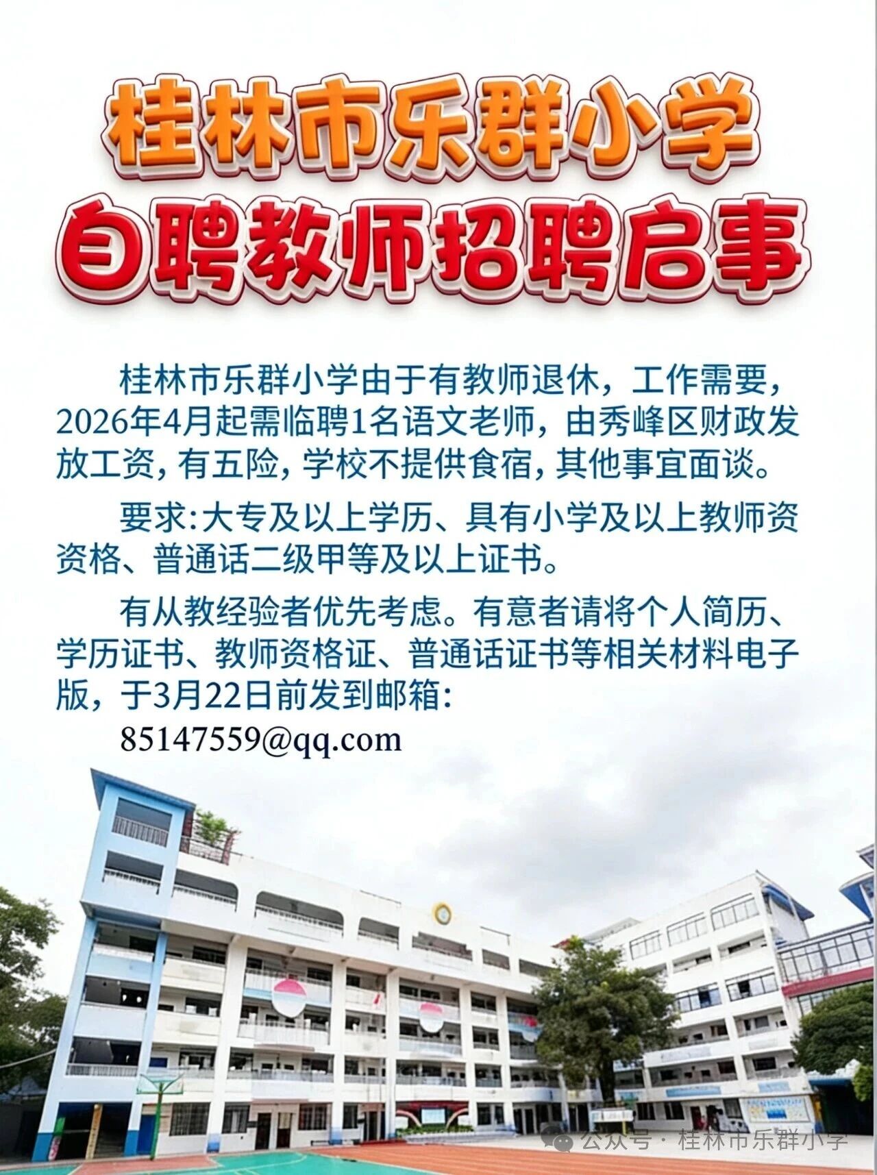 2026年桂林市樂群小學(xué)自聘教師招聘1人