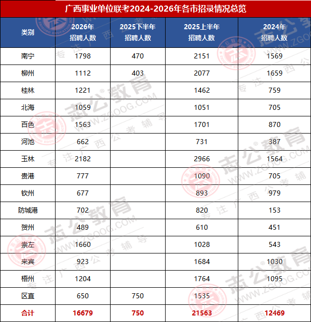 2026廣西事考招錄16679人,較2025上半年廣西事業(yè)單位招錄縮招了4884人;招錄波動(dòng)大、但是機(jī)會(huì)集中,醫(yī)療E類、綜合A 類為招錄主力;廣西區(qū)直、南寧、桂林等崗位競(jìng)爭(zhēng)激烈,是應(yīng)屆生與社會(huì)考生圓夢(mèng)重要賽道。
